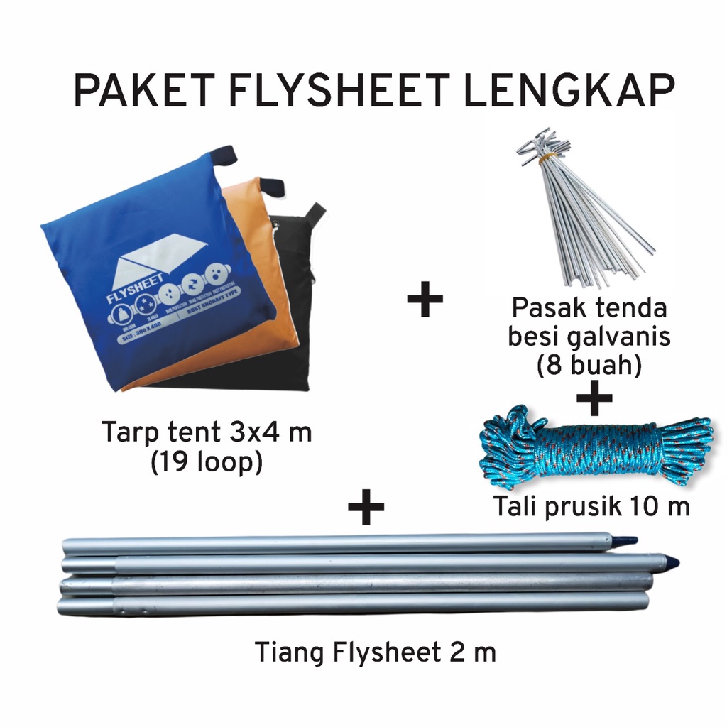 Paket Flysheet Lengkap / Flysheet tarp tent 3x4 m - Tarp Pole 2 m - Tali Prusik 10 m - Pasak Tenda