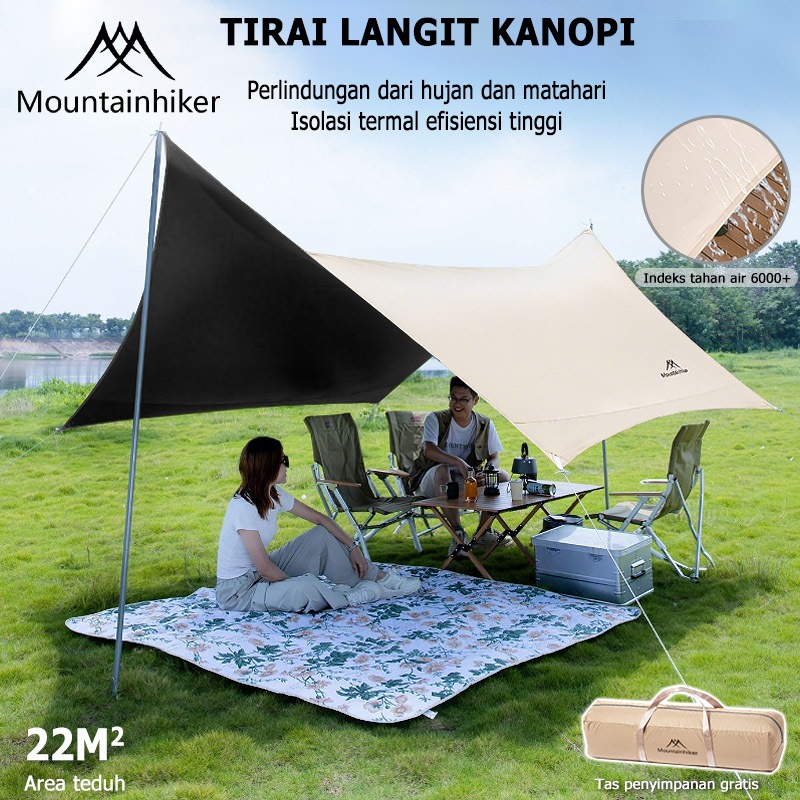 Mountainhiker 22\16\10㎡ Kanopi Luar Ran dengan Tenda Berlapis Hitam Twin Peaks Pelindung Matahari Tahan Hujan Tenda Berk