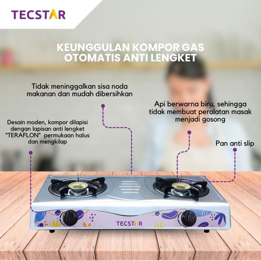 [Star] KOMPOR GAS 2 TUNGKU TGS - 622 SS FREE SELANG REGULATOR Api Biru Optimax