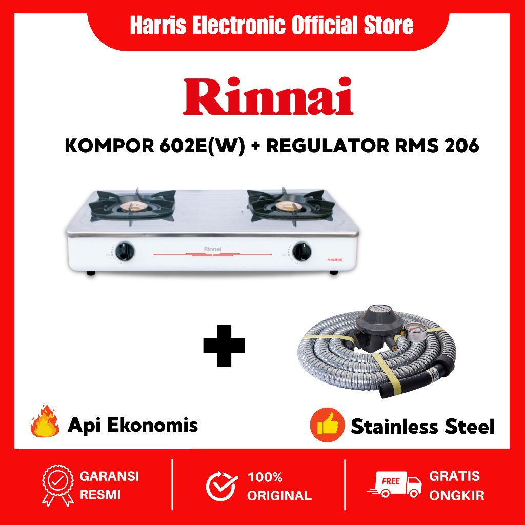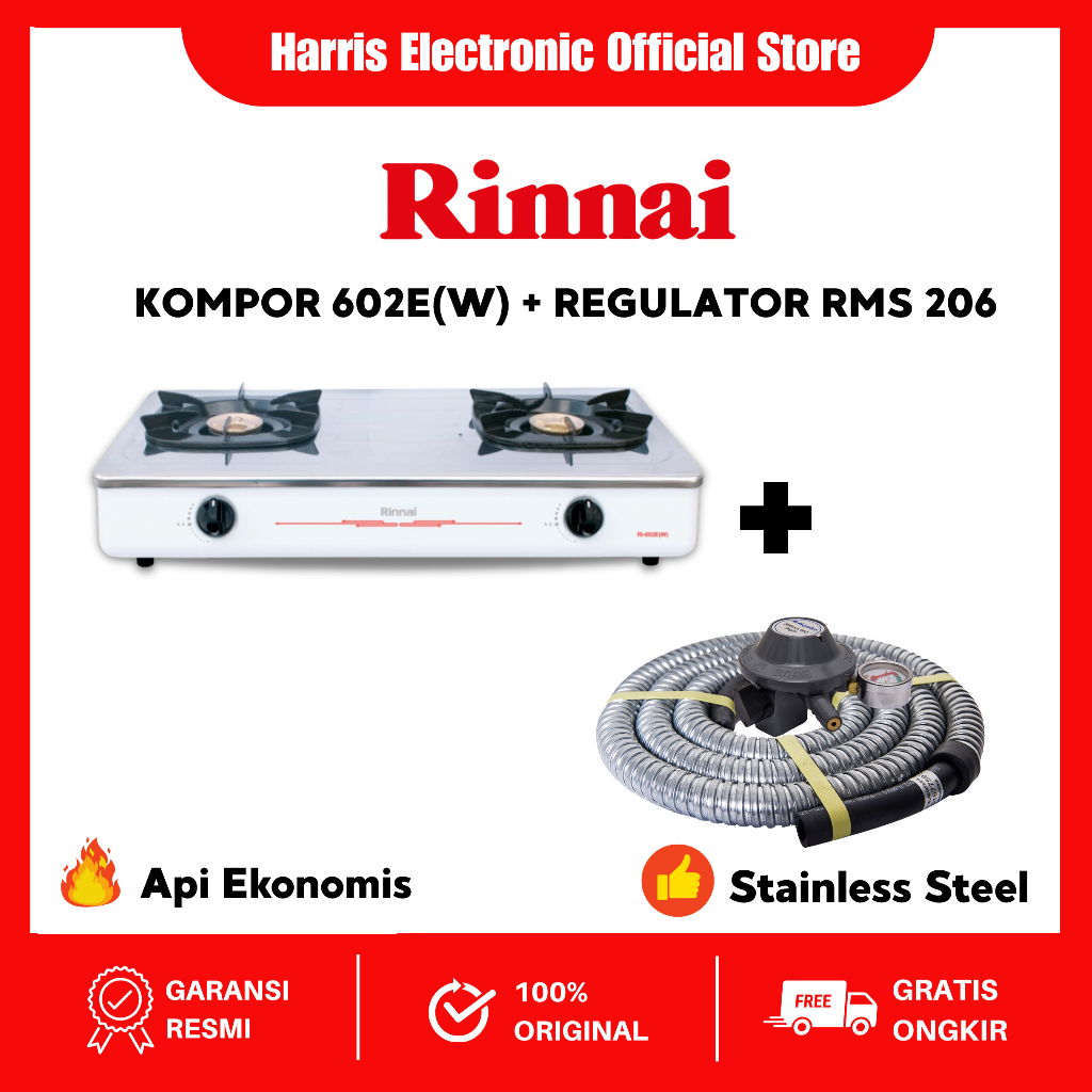 [Star] PAKET BUNDLING Kompor gas Rinnai 602E(W) + Selang regulator RMS 206