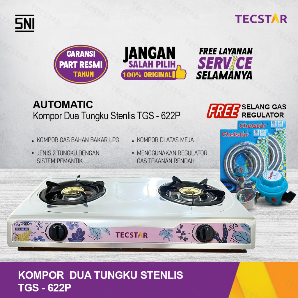 [Star] TECSTAR Kompor Gas 2 Tungku Stainless TGS-622 SSP Limited Edition Pink Gratis Selang Regulator