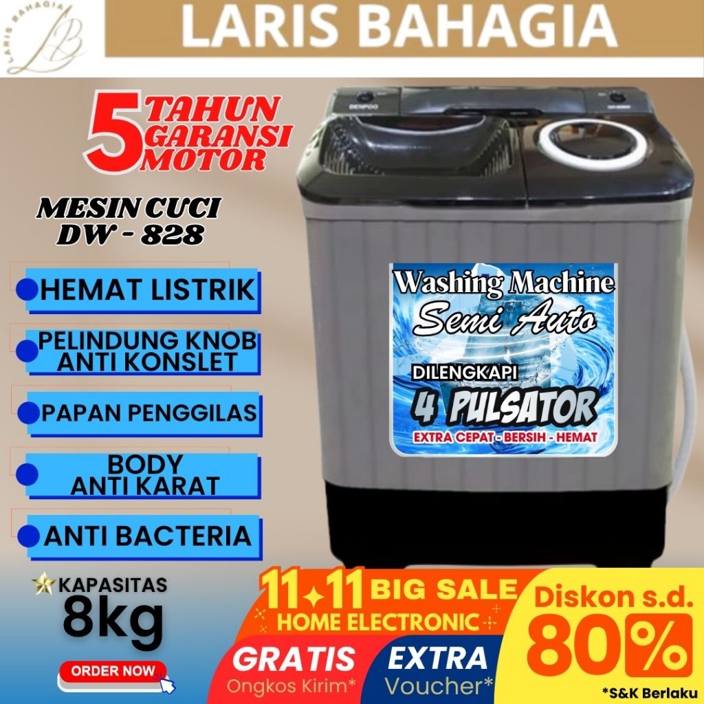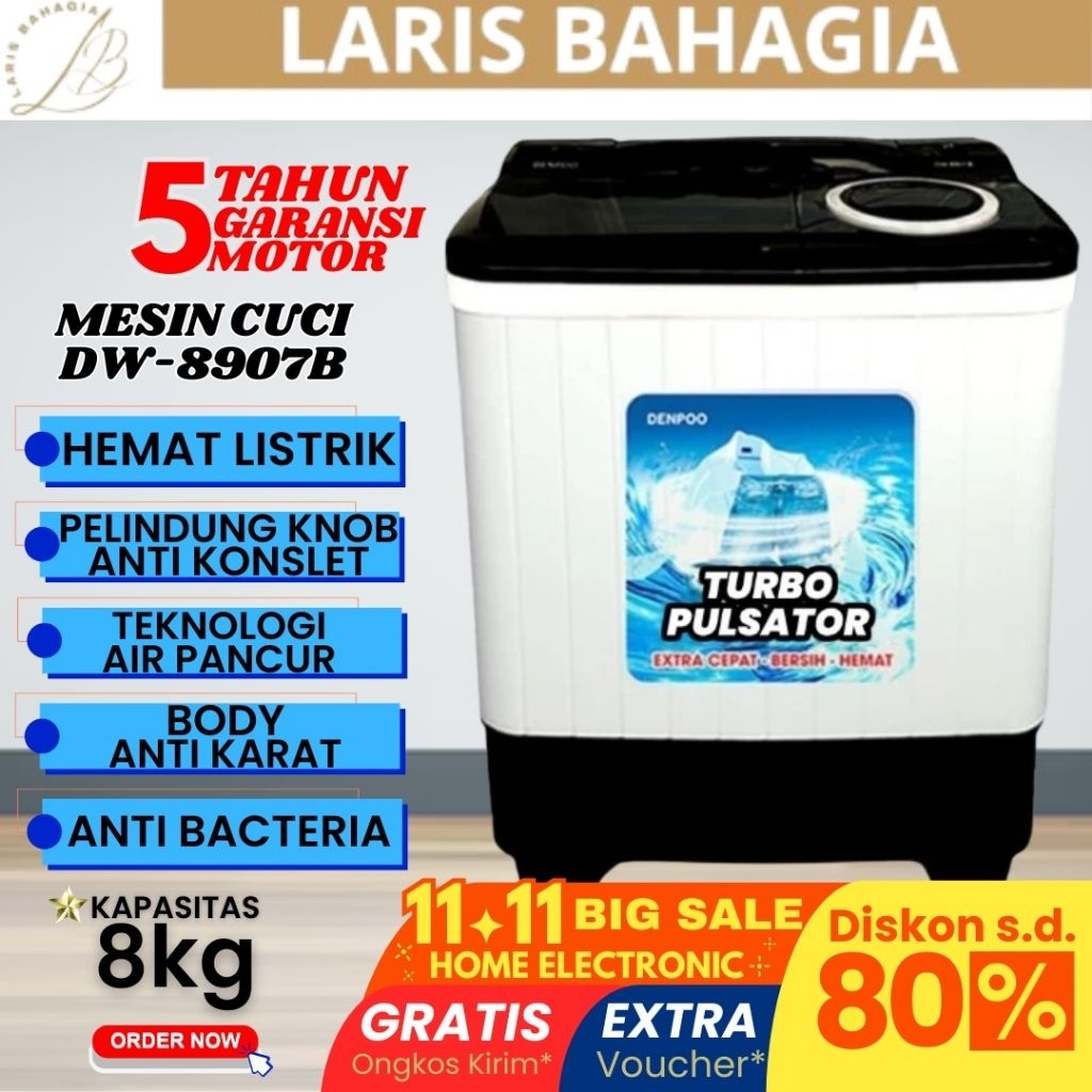 [Star] DENPOO Mesin Cuci 2 Tabung 8kg FREE ONGKIR Mesin Cuci Terlaris DW 8907b & DW 828