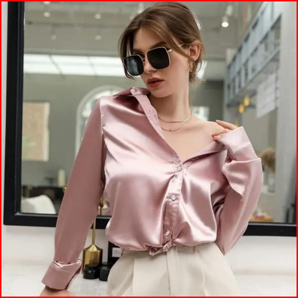 Kemeja Satin Silk Premium - Kem Saten Velvet Premium Size Xl Kemeja Wanita Saten Kekinian Lengan Panjang Atasan Kemeja S