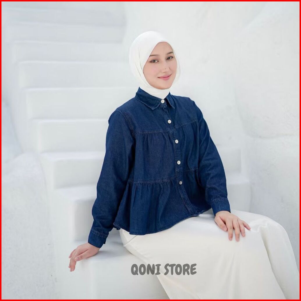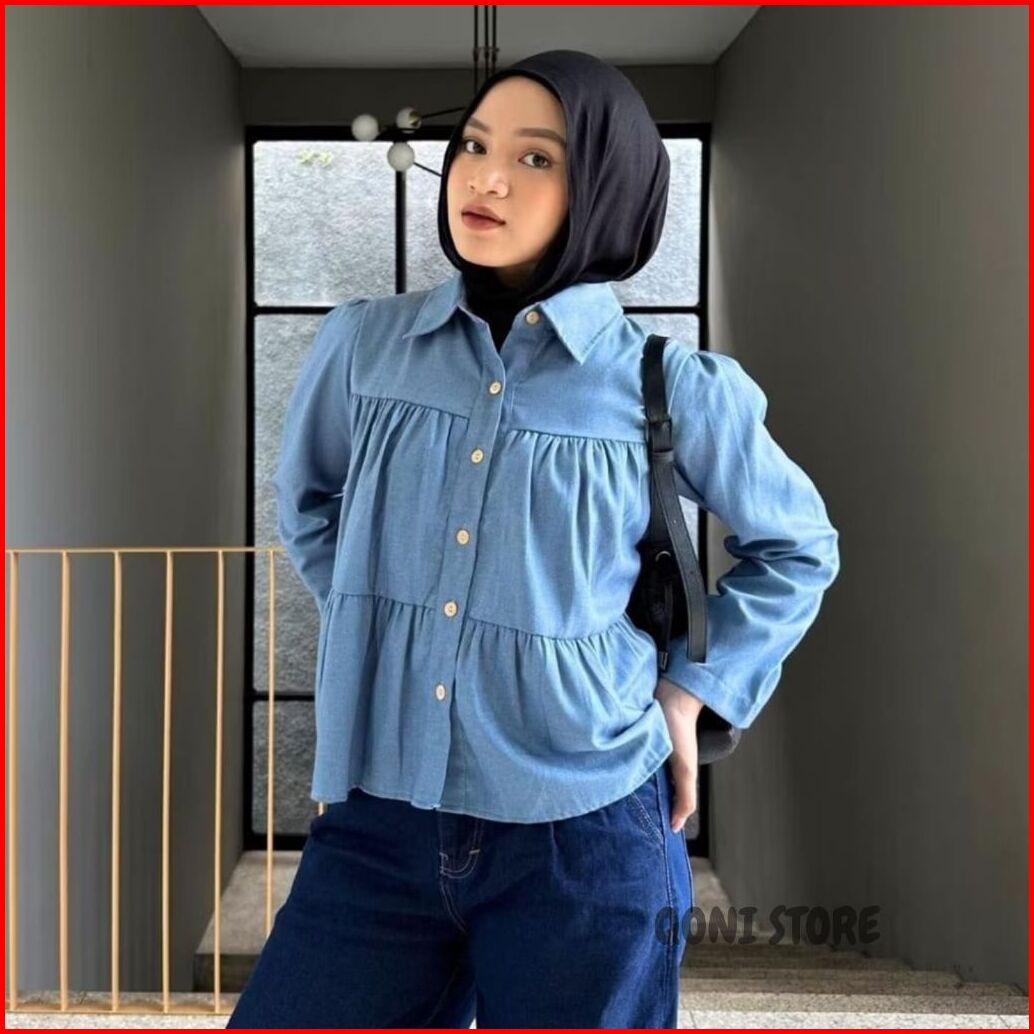 Kemeja Jeans Wanita Oversize Silang Snowblue Ld 100-120 Kemeja Jeans Wanita Kekinian
