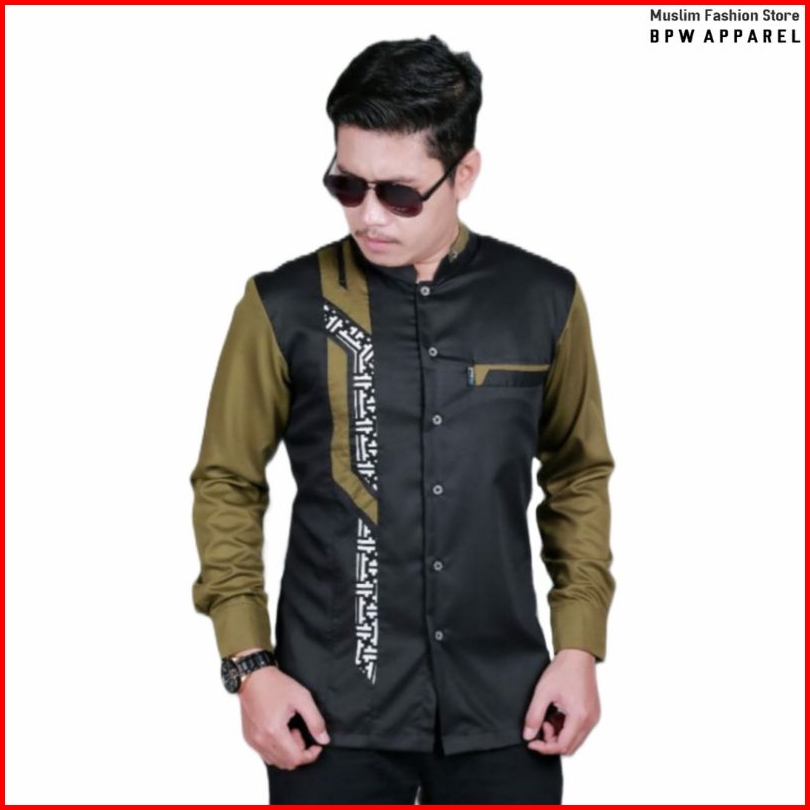 Baju Koko Hadroh Atasan Muslim Pria Lengan Panjang Motif Sinergi Hilwa Kombinasi Batik Terbaru Kemeja Koko Azzahir Koko