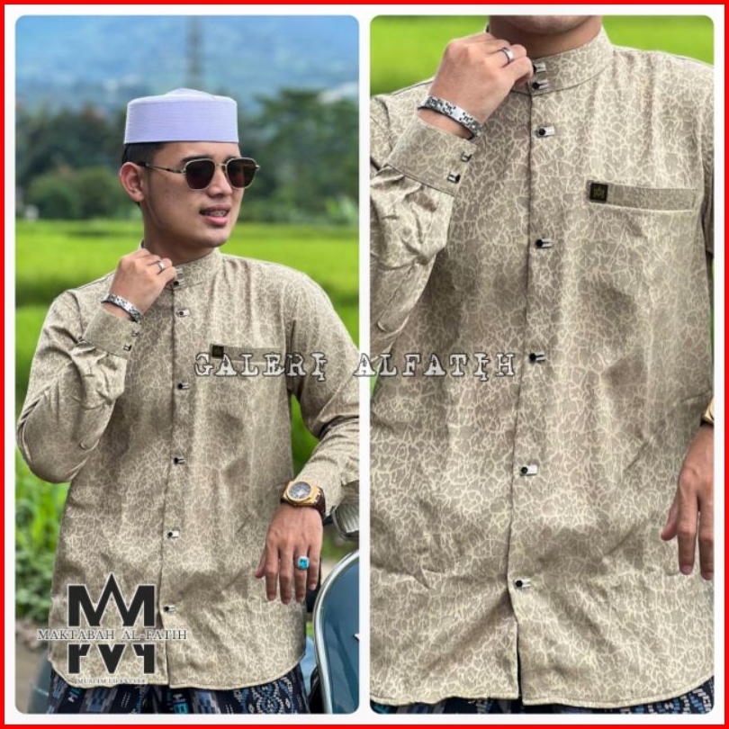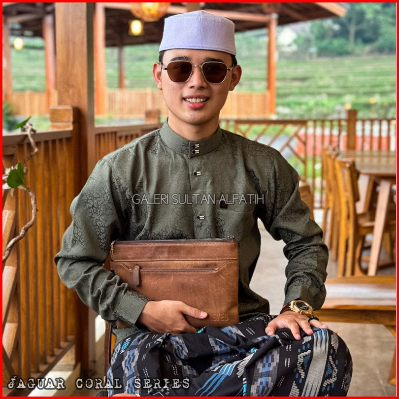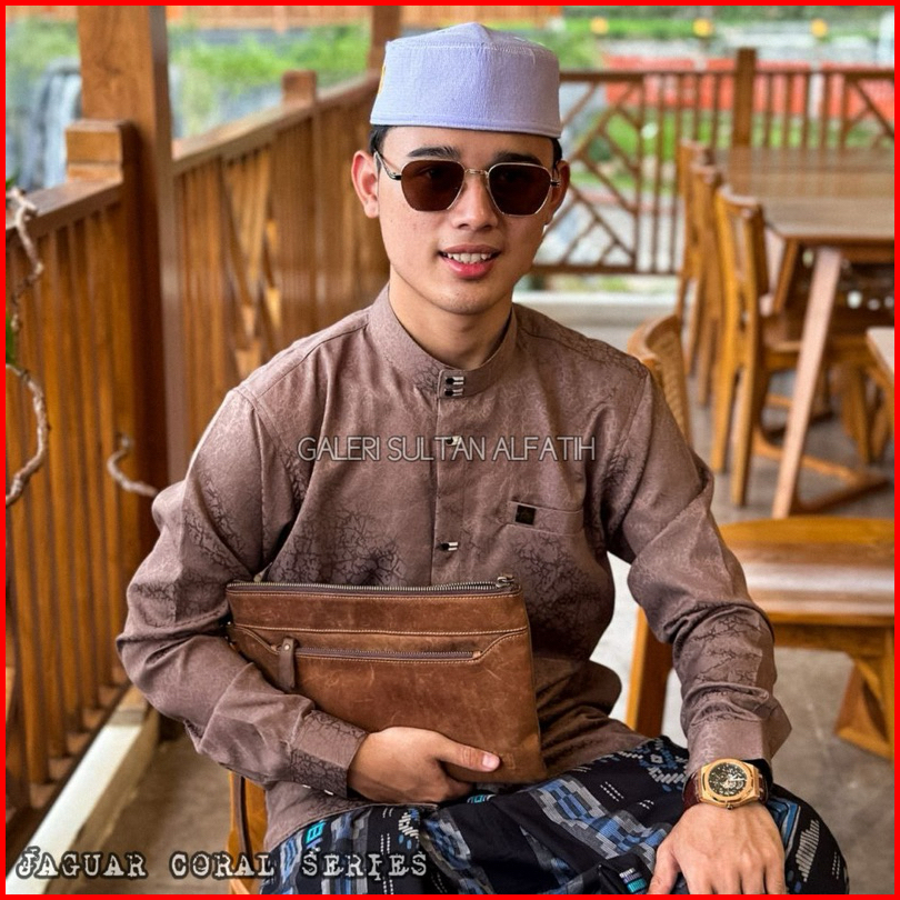 Kemko Jaguar Alfatih Motif Coral Katun Songket Kemeja Koko Pria Dewasa