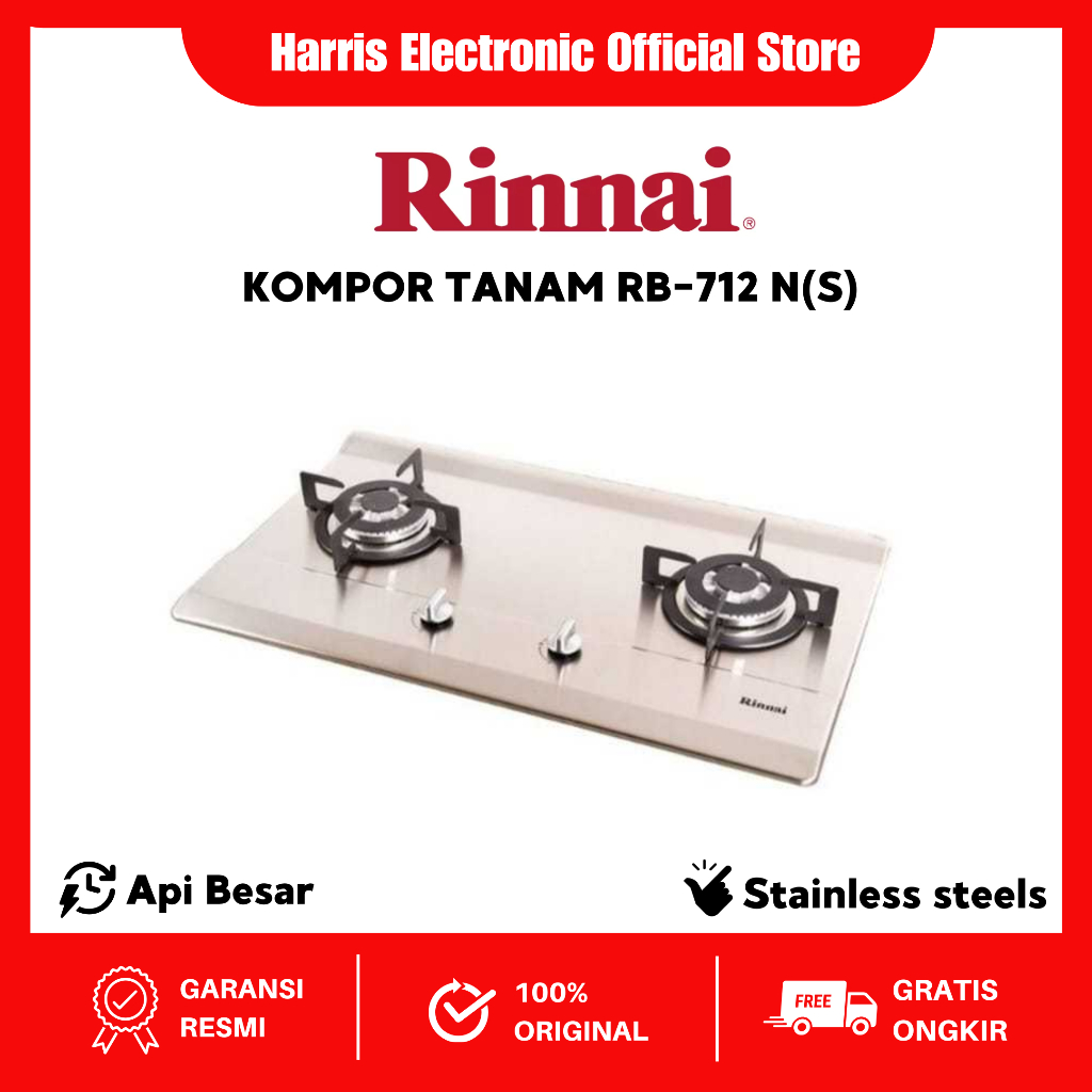 [Star] Kompor Gas Tanam 2 Tungku (Stainless) Rinnai RB-712N (S) / RB712NS ORI