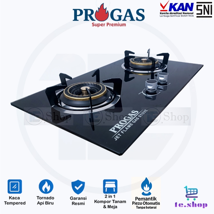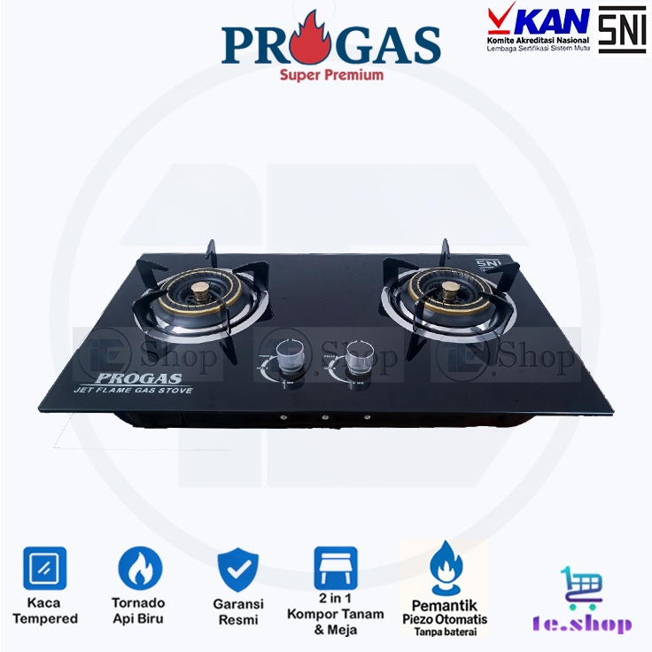 [Star] Kompor Gas 2 Tungku Tanam Kaca Progas Kompor Tanam Kaca Garansi 1 Tahun