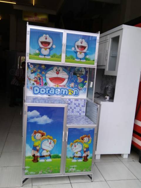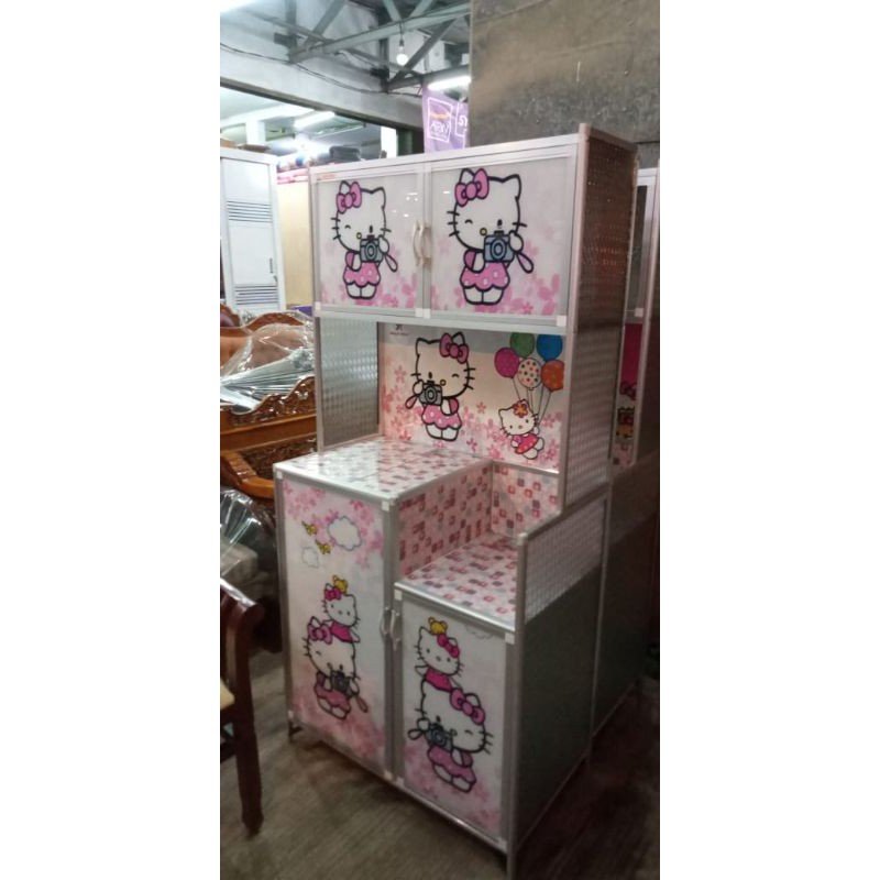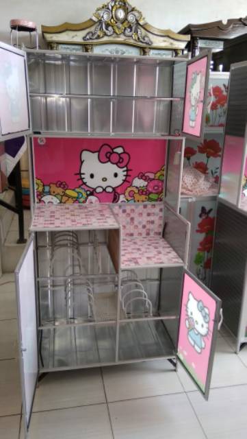 Lemari Piring Rak Piring 2Pinfu Full Karakter Almunium Kaca