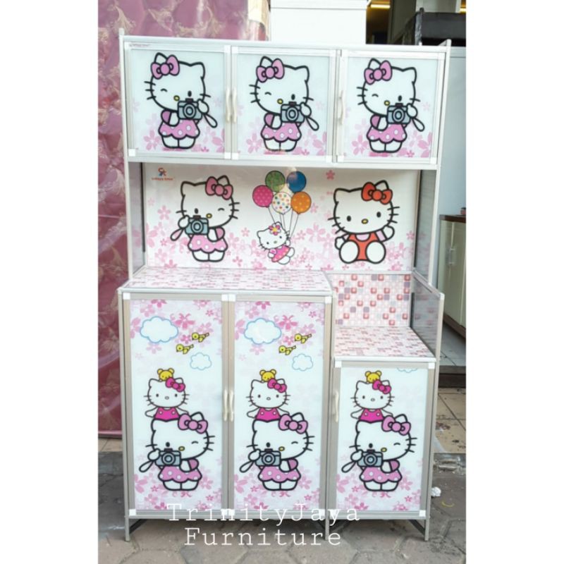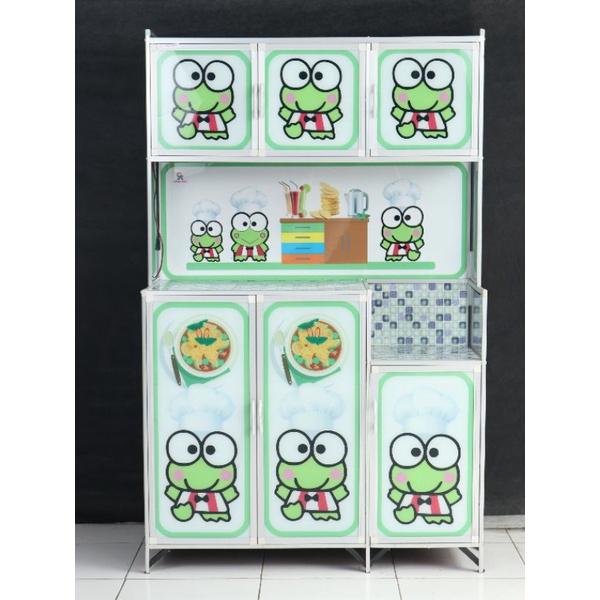 Lemari Piring Rak Piring 3 Pintu Almunium Kaca Full Karakter