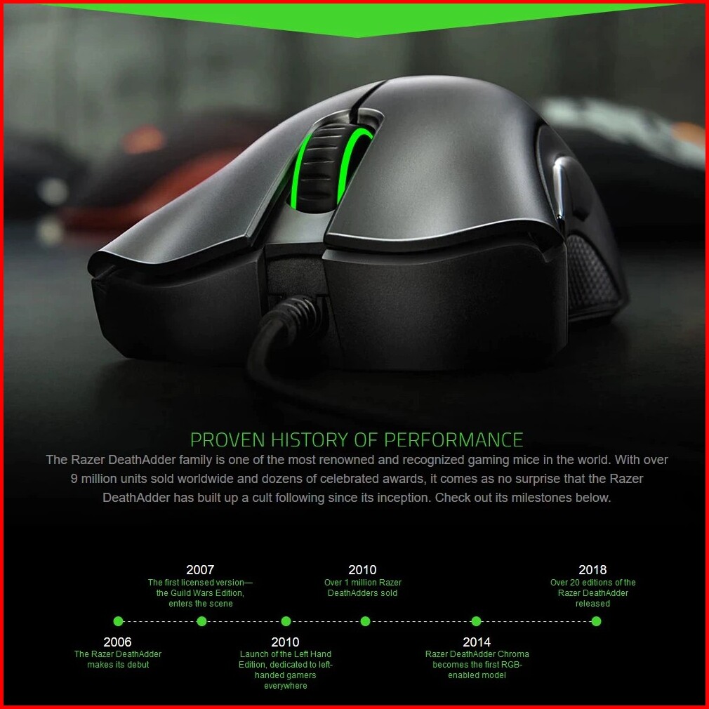 Razer Mouse Gaming Dengan Sensor Optik Mouse Berkabel Usb Untuk Pc Dan Laptop 6400dpi 5 Tombol Independen
