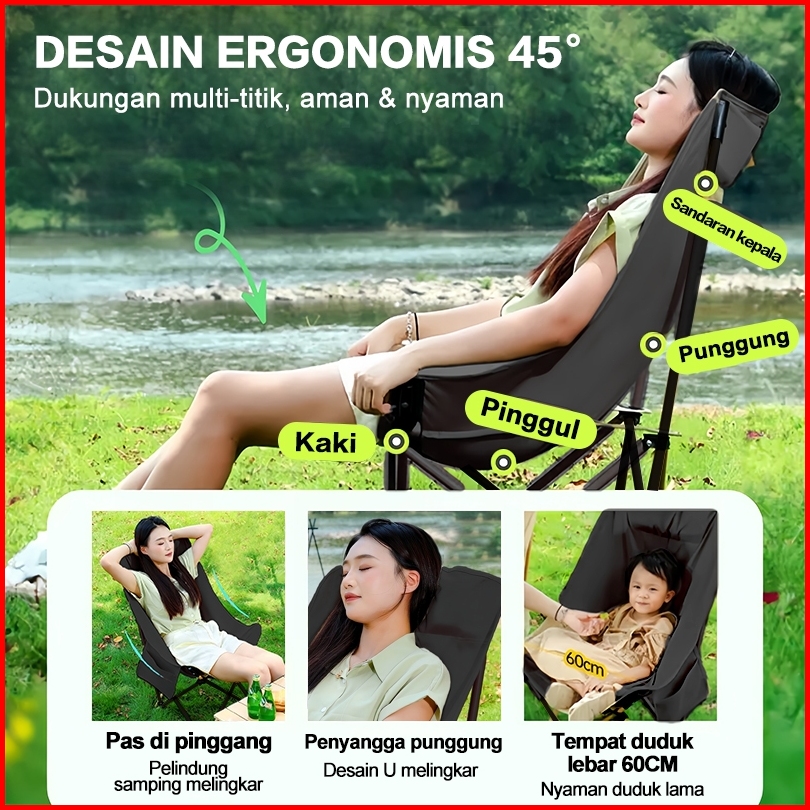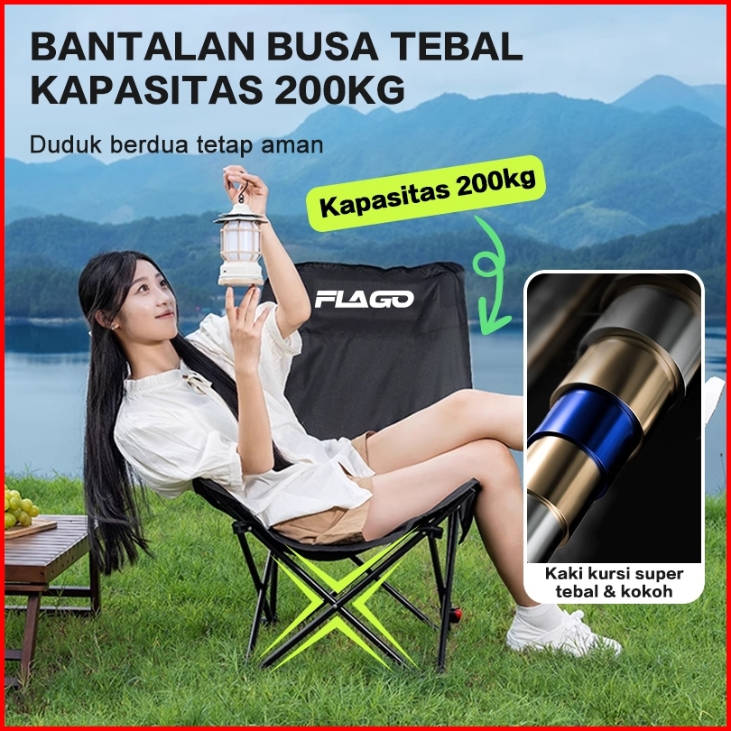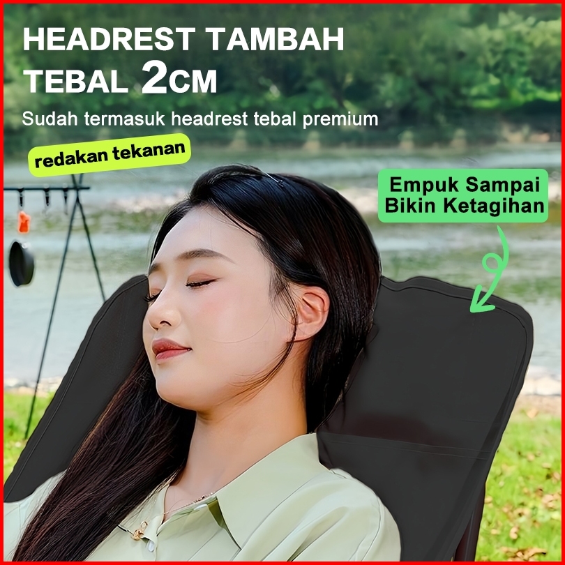 Flago Kursi Lipat Sandaran Tinggi Dengan Sandaran Kepala Busa Kursi Camping Kuat Lebar Tebal Beban 200kg