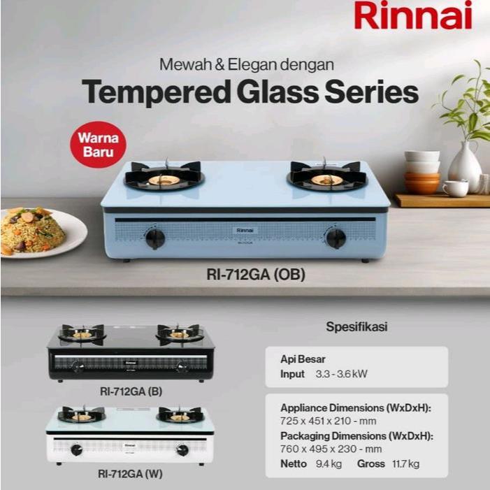 [Star] RINNAI : KOMPOR GAS KACA 2 TUNGKU RI 712 GA(B) / 712 GA(W) / 712 GA(OB)