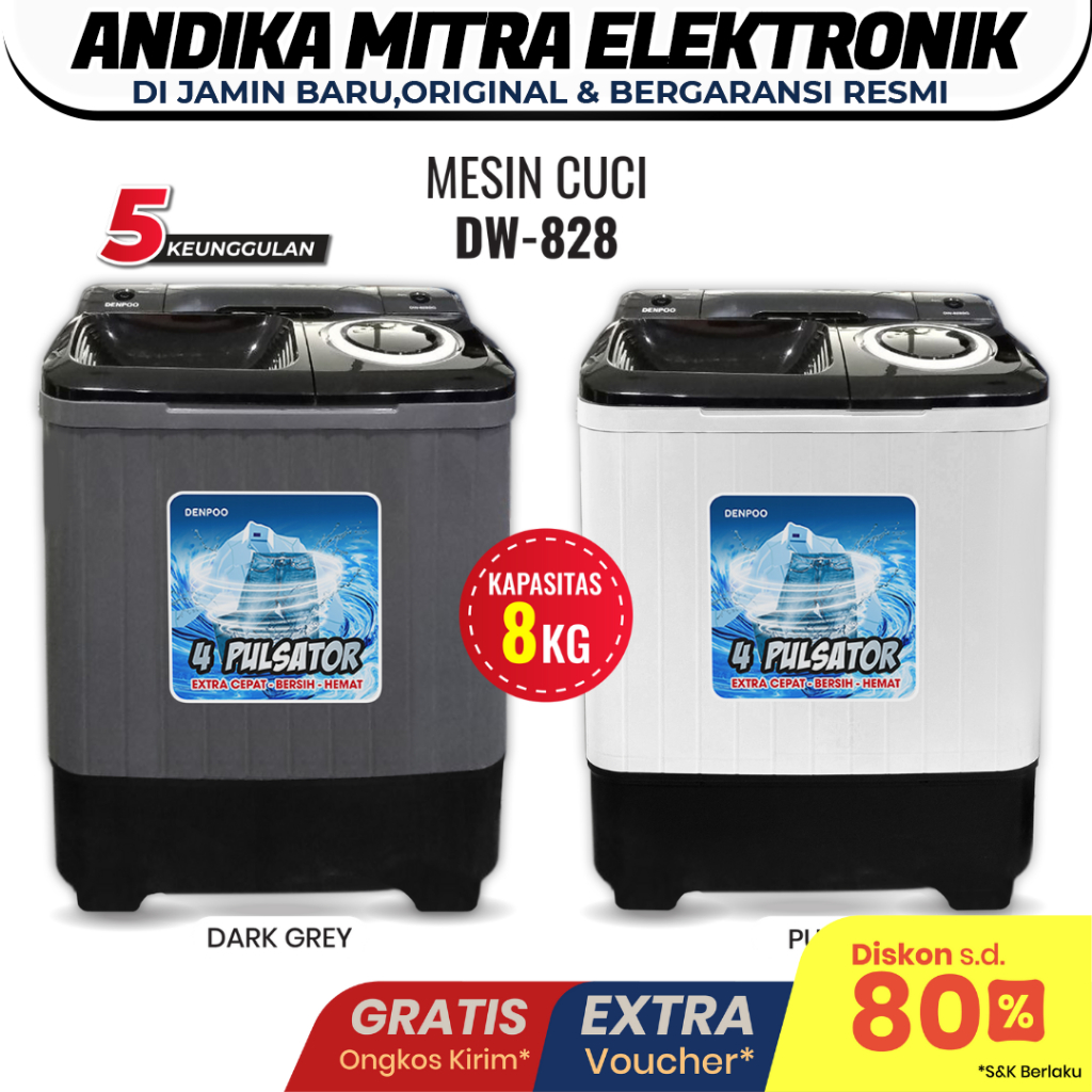 [Star] Mesin Cuci DW 828 4P 8Kg 2 Tabung Anti Bakteri dan Super Hemat Listrik