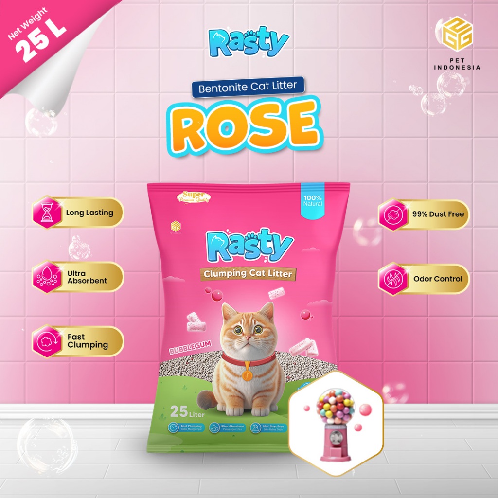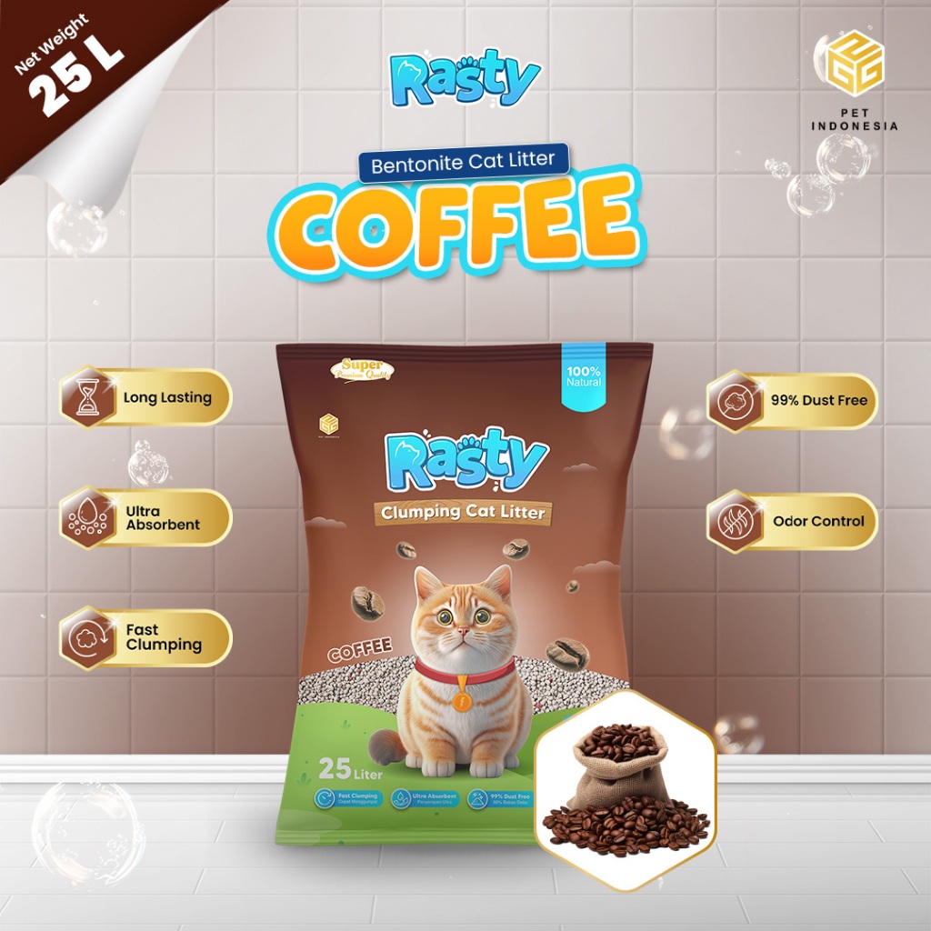 RASTY Pasir Kucing Gumpal Bentonite Rasty 25 Liter Premium Produk