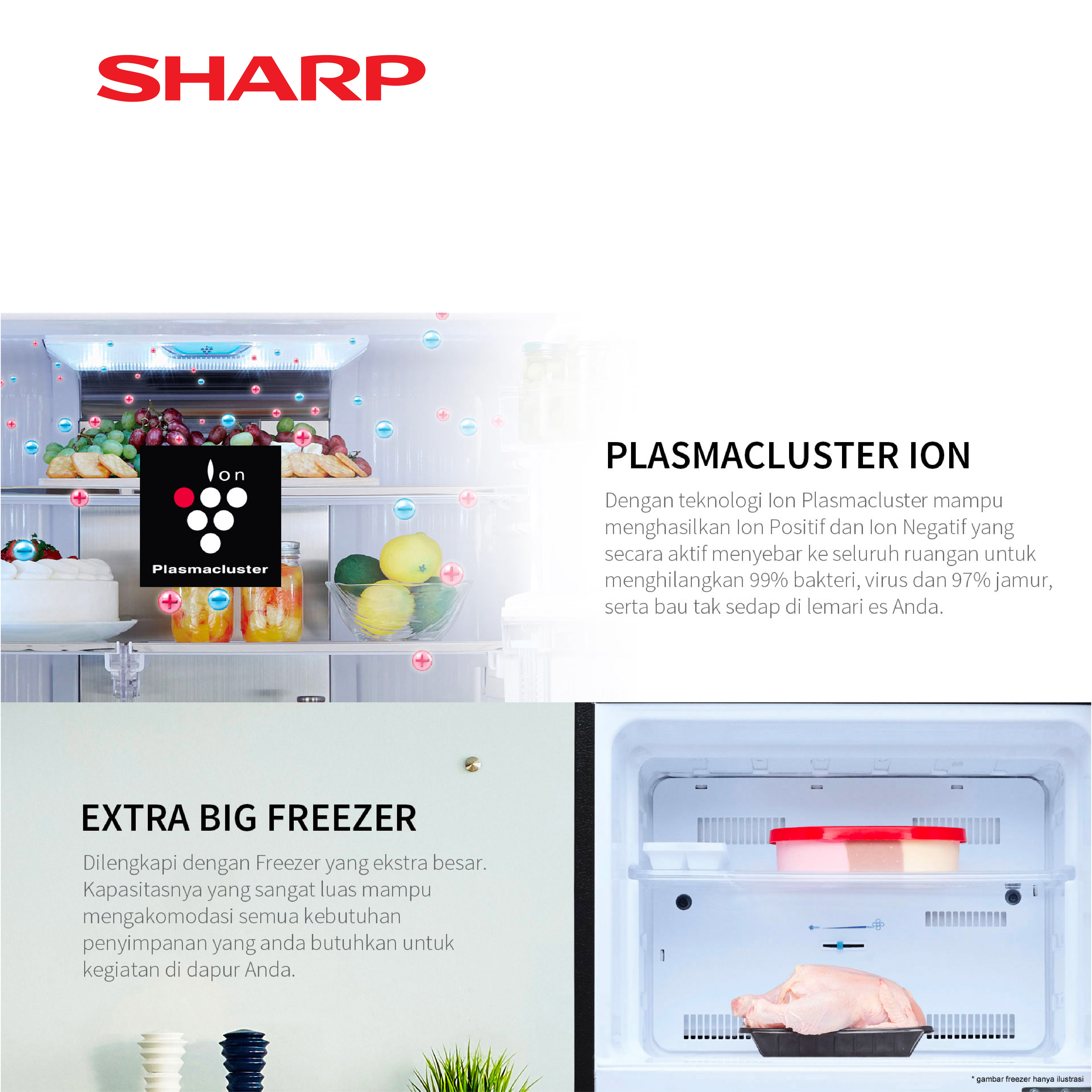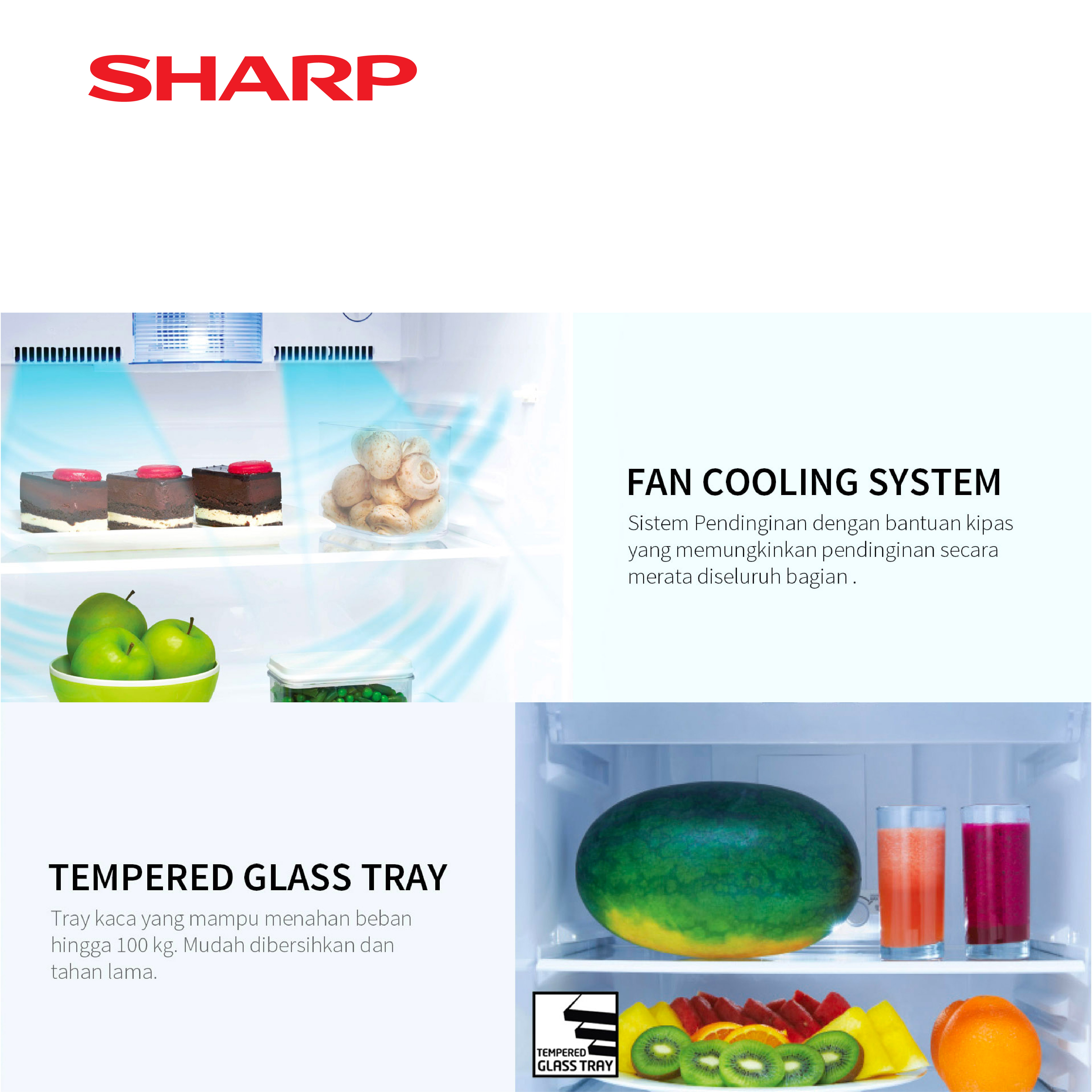 [Star] Sharp Kulkas 2 Pintu SHINE Glass Door J-Tech Inverter 338L - SJ-426GI-GW