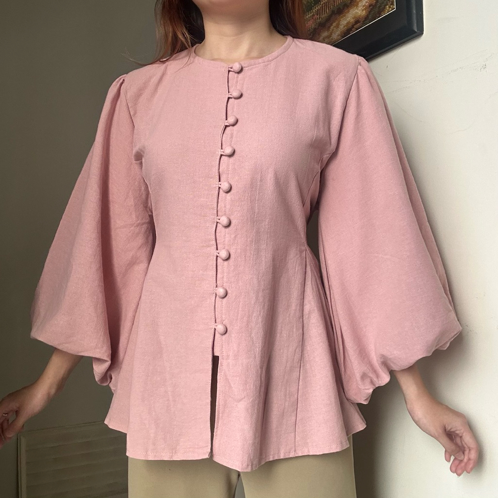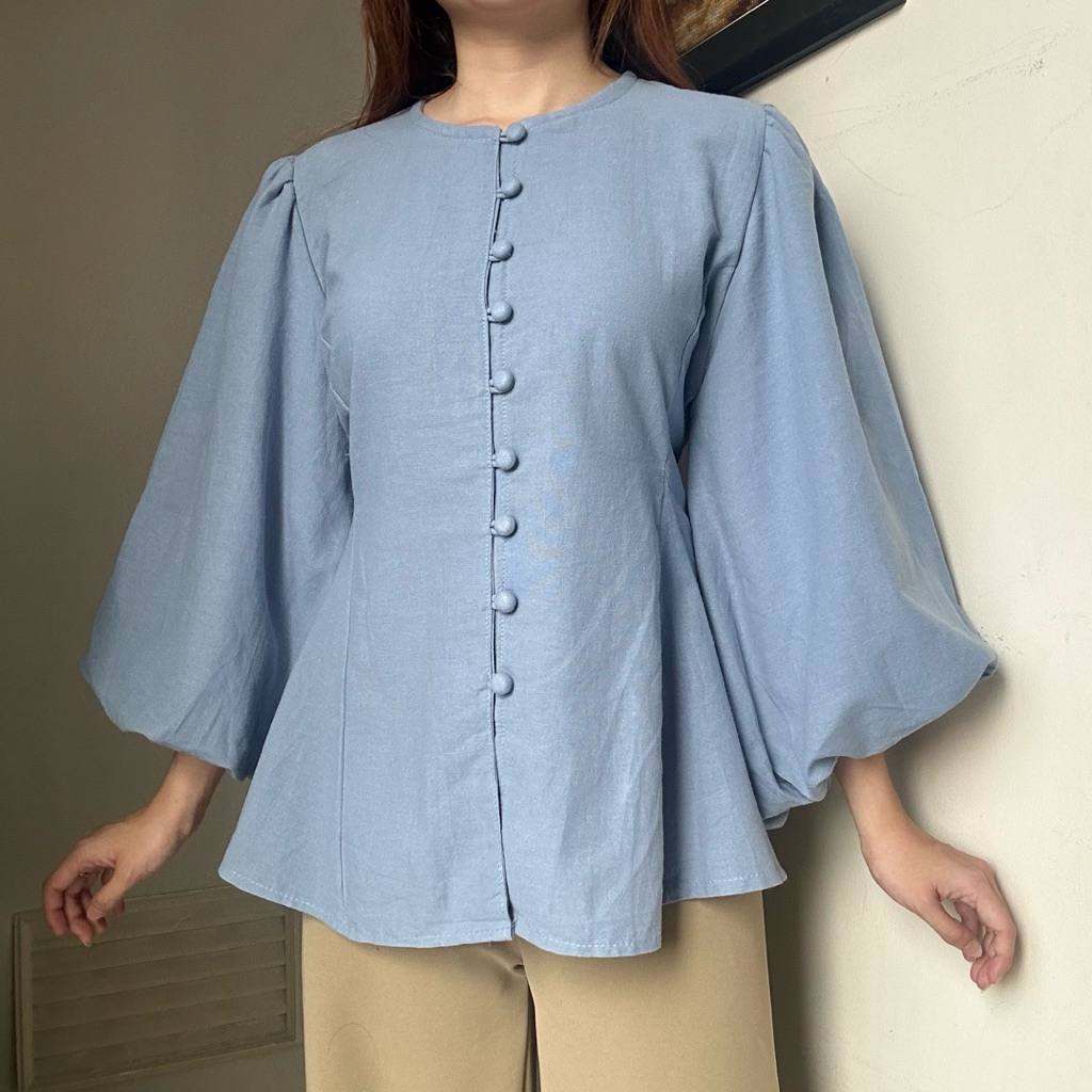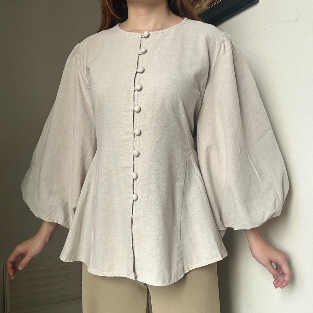 Astrid Top Atasan kemeja blouse wanita kerja linen tangan balon panjang korean style by biel the label