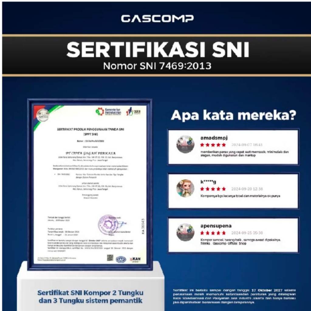 [Star] GASCOMP Kompor Tanam Kaca 8 Jet 2 Tungku Hemat Gas Tempered Glass dengan kaki Kitchenware