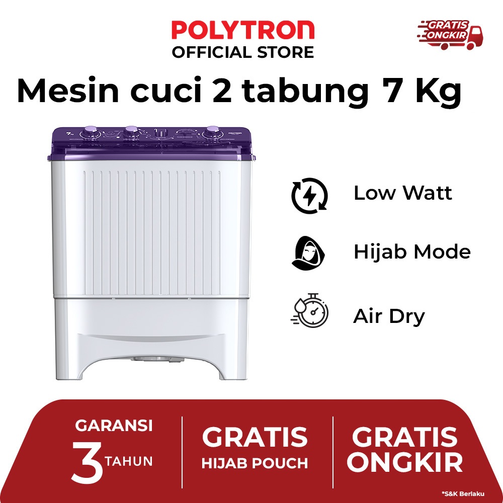[Star] POLYTRON Mesin Cuci 2 Tabung Primadona Giant Series Hijab 7 Kg - PWM 7081