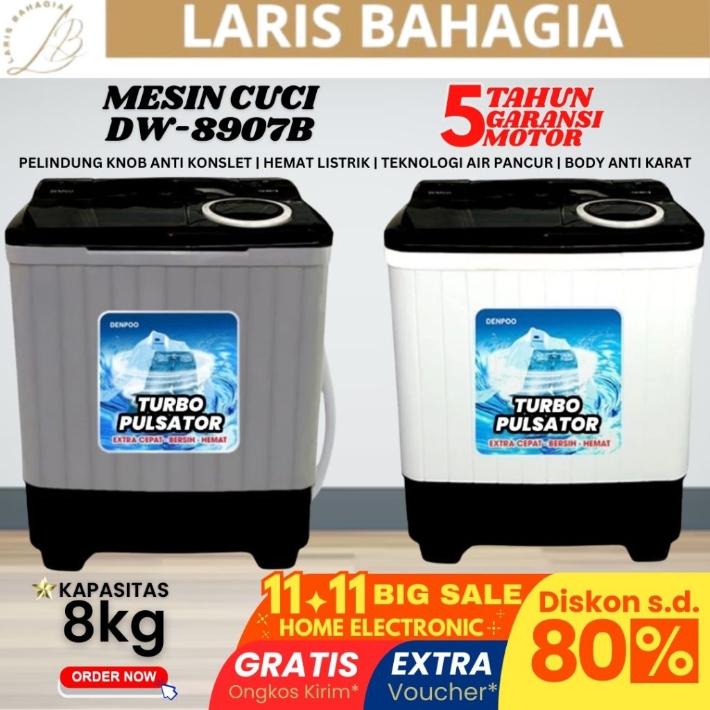 [Star] DENPOO Mesin Cuci 2 Tabung 8kg FREE ONGKIR Mesin Cuci TERLARIS