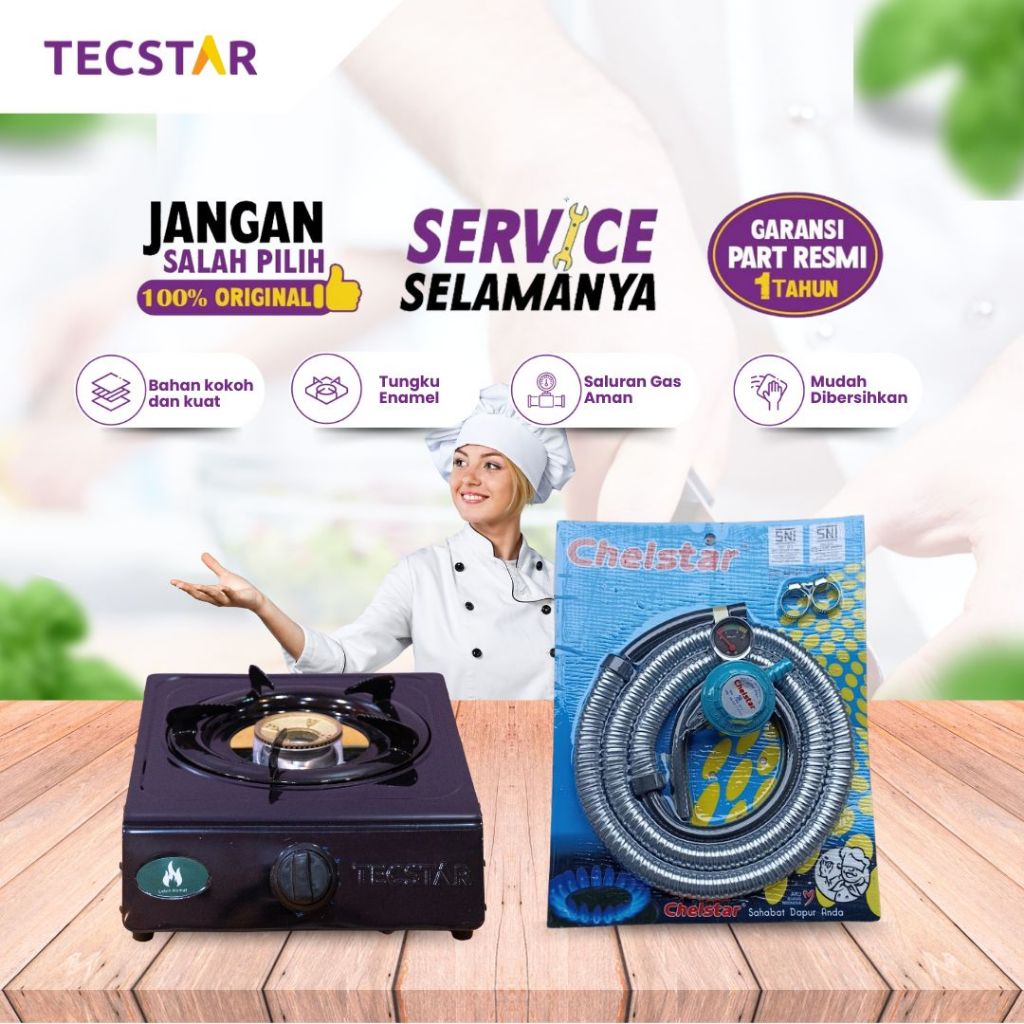 [Star] TECSTAR Kompor Gas 1 Tungku Teflon Optimax TG388CSA GRATIS Selang Regulator