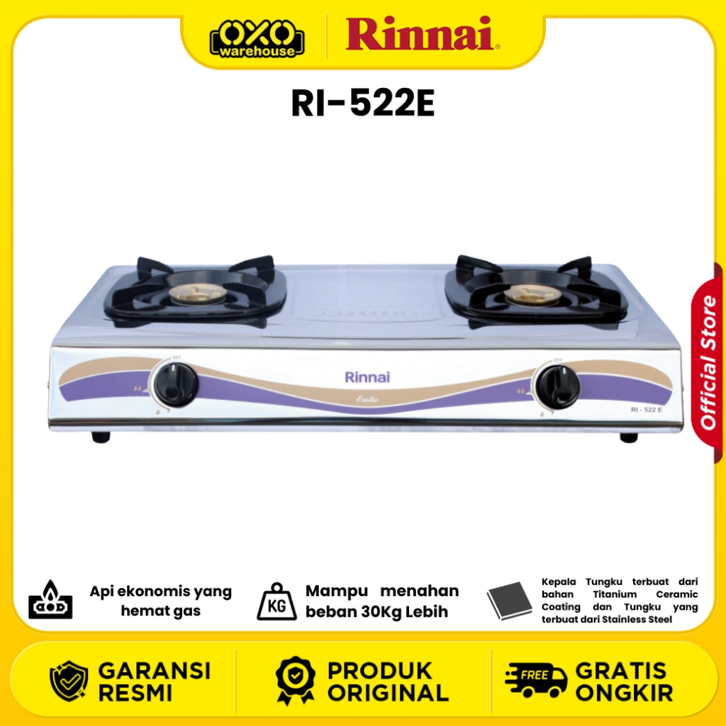 [Star] Rinnai Kompor Gas 2 Tungku RI-522 E Bahan Stainless Garansi Resmi Original