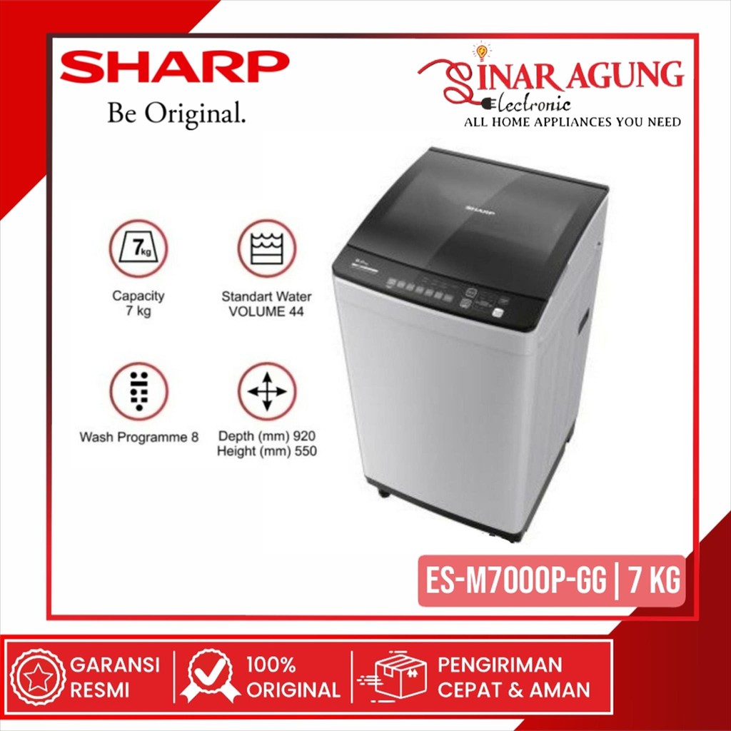 [Star] SHARP ES-M7000P-GG / ESM7000PGG MESIN CUCI T0P LOADING 7KG - GARANSI RESMI