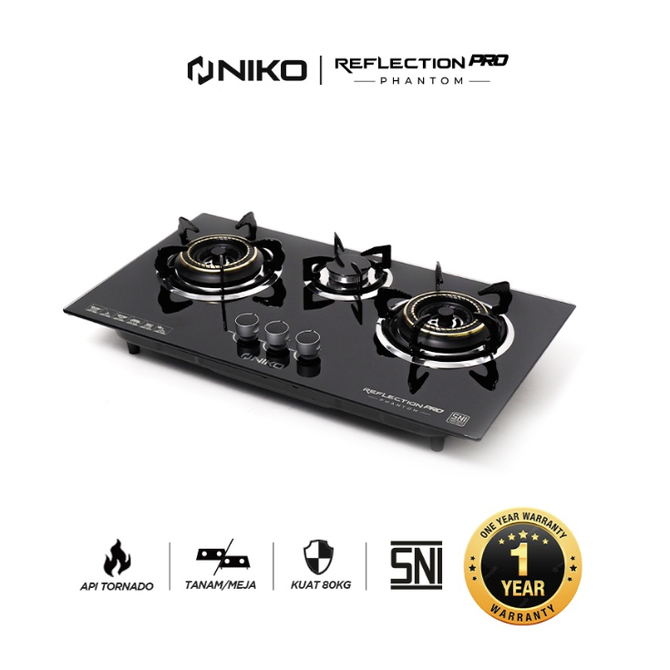 [Star] NIKO Kompor Gas Kaca 2 3 Tungku - Pro Phantom & Reflection Next Black Tempered Glass