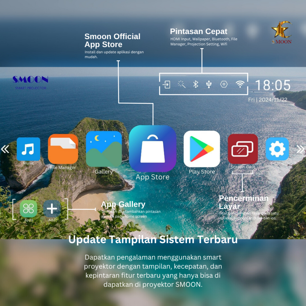 Smoon 330 Smart Proyektor Lcd TV - Google Store Android - Netflix Youtube 330ansi - Internet - 720p