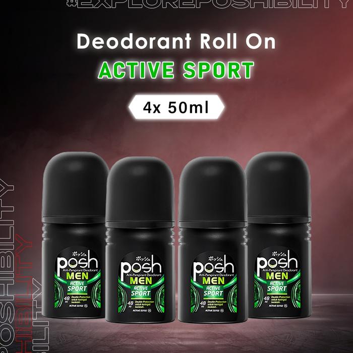 Posh Men Roll On Deodoran Active Sport 50ml Isi 4 Pcs Tahan Bau 48 Jam - Deodoran Pria Anti Lengket