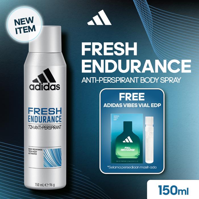 ADIDAS Fresh Endurance Anti-Perspirant Body Spray 150ml FREE Adidas Vial EDP Full Recharge 1.2ml