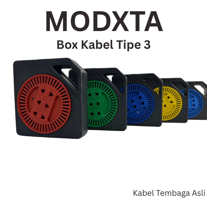 MODXTA Box Kabel 3 Meter - Roll Kabel Tembaga Stop Kontak dengan Lampu Indikator Biru Hijau Kuning Merah Ungu