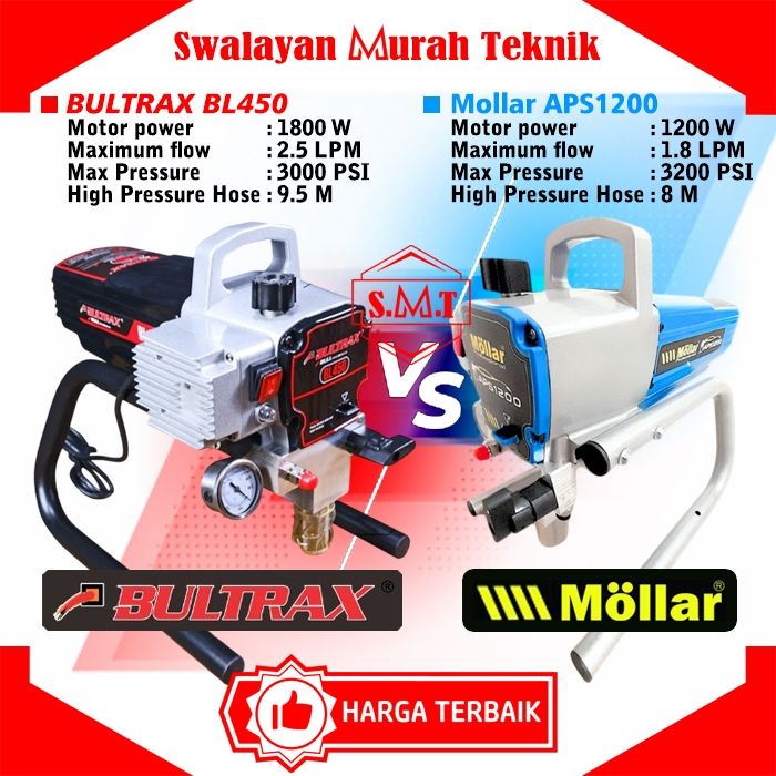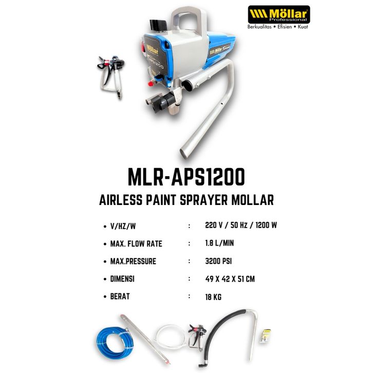 Airless Paint Sprayer MOLLAR APS1200 Alat Cat Tanpa Kompresor 1,8 LPM