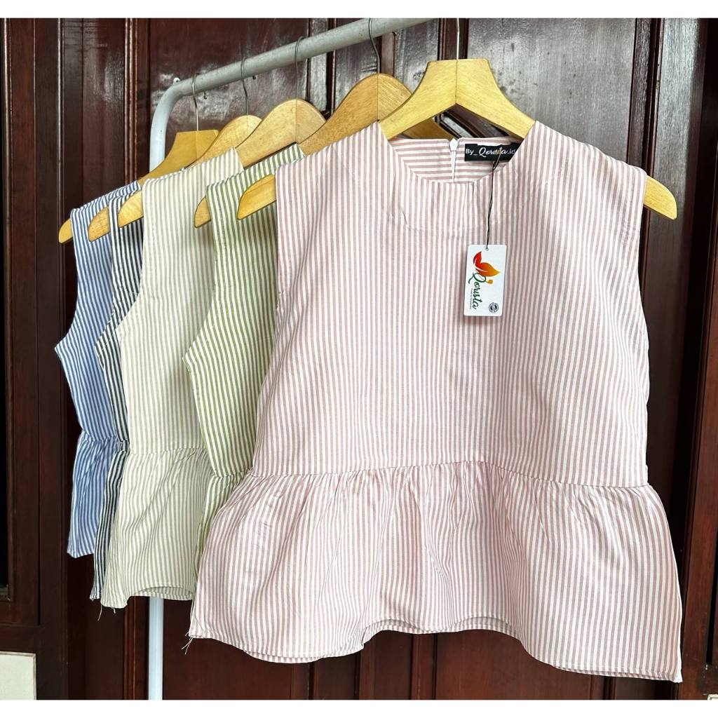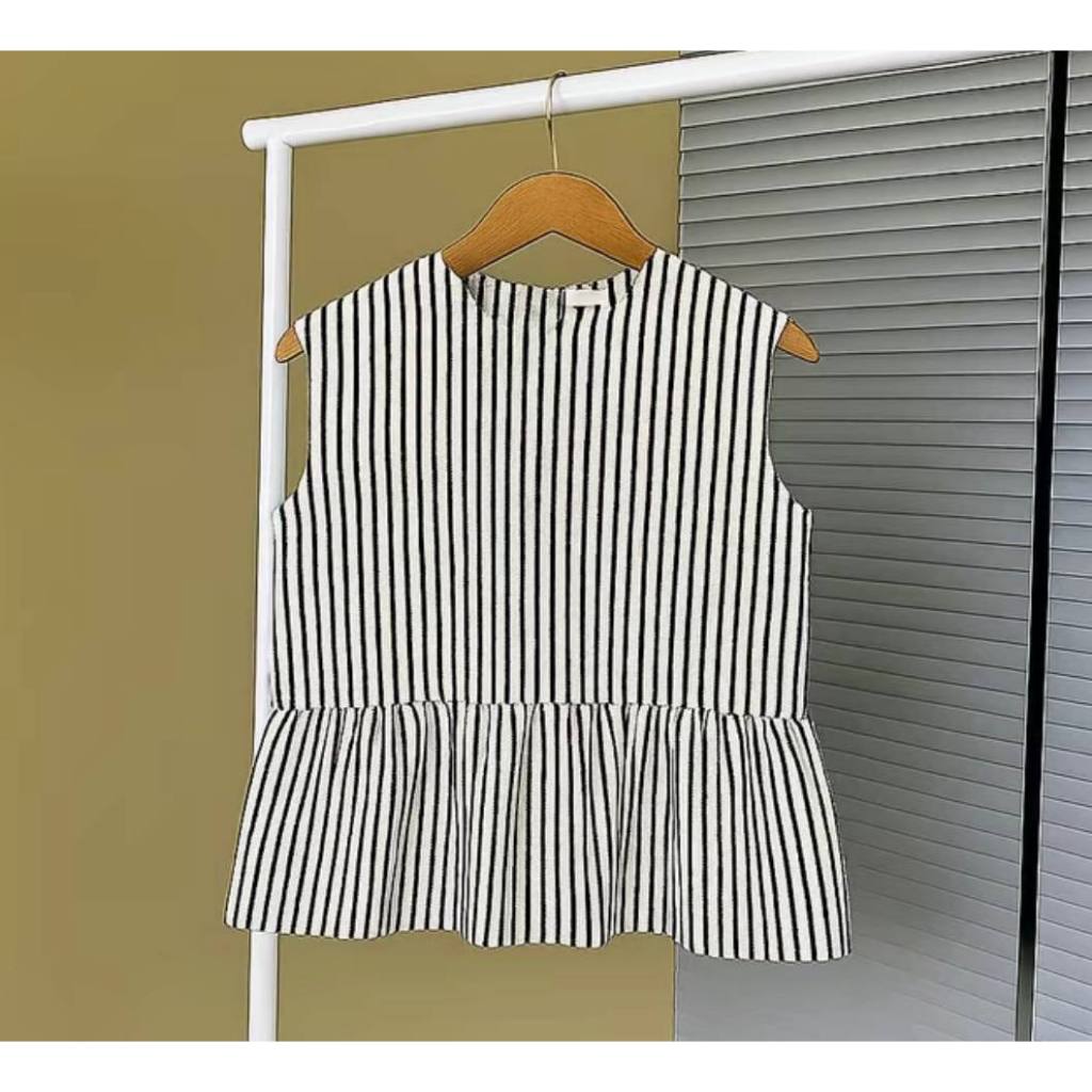 [Star] Amora Vest Inner Peplum Top Gaya Korean Style Inner Cardigan Stripe Blouse