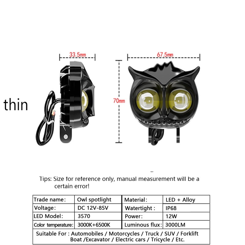 KEVANLY Lampu sorot LED sepeda motor mobil dua warna burung hantu lampu kabut 12v-85v skuter lampu tambahan aksesoris sepeda motor