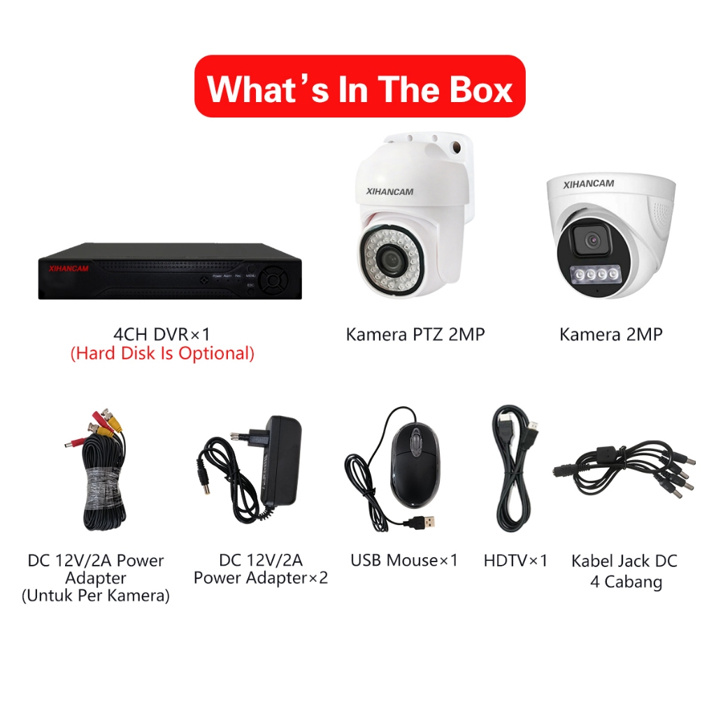 XIHANCAM Paket Lengkap DVR CCTV 4 Channel 2MP Kit Kamera CCTV Analog PTZ Audio Komplit XVR CCTV 4CH