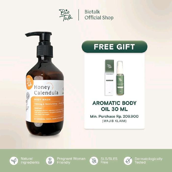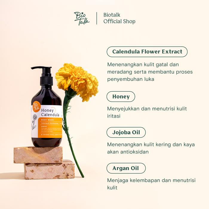 BIOTALK HONEY CALENDULA BODY WASH | 300 ML | NO SLS/SLES | SABUN MANDI CAIR NATURAL | MELEMBABKAN DAN MENENANGKAN KULIT EKSIM & PSORIASIS - LIQUID SOAP