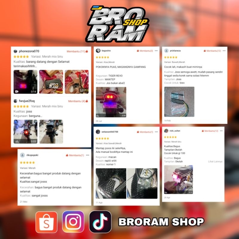 Merah cover merah, Biru mika smok, Merah mika smok, Biru mika clear, Merah mika clear