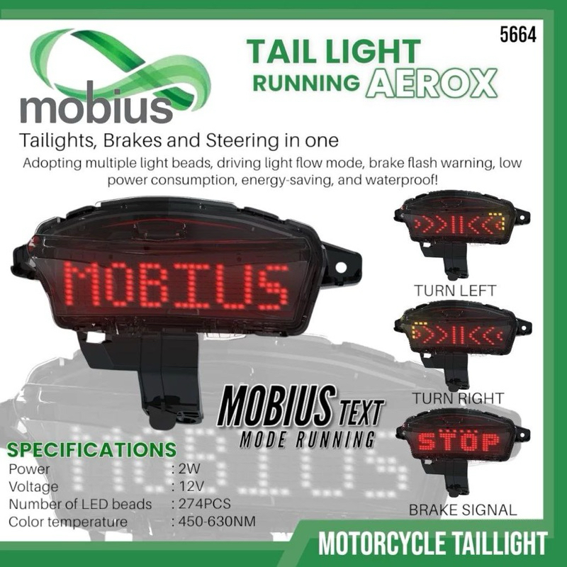 LAMPU STOP AEROX 155 STOPLAMP 3 IN 1 RUNNING MOBIUS