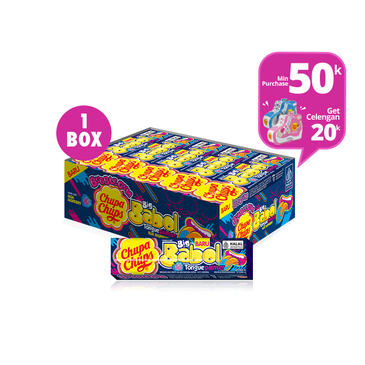 Chupa Chups Big Babol Tongue Painter Stick 20g - Permen Karet Rasa Raspberry 1 Box