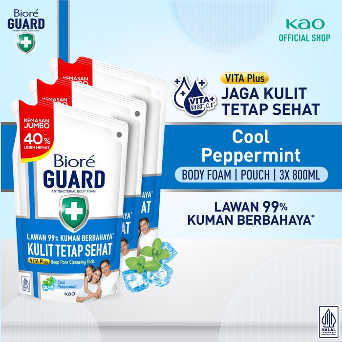 BIORE GUARD SABUN MANDI CAIR ANTI BAKTERI COOL PEPPERMINT 800ML POUCH TRIPLEPACK