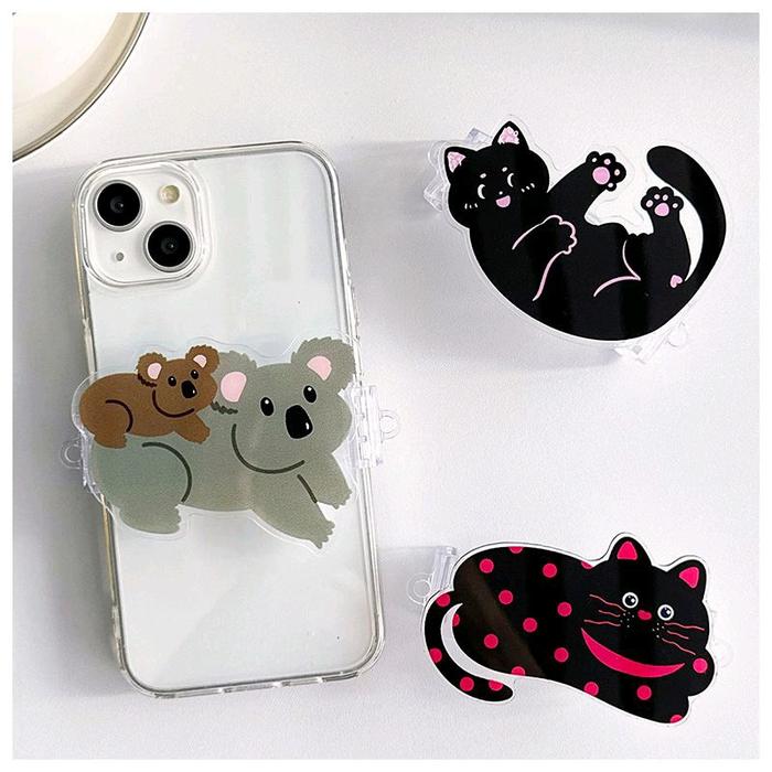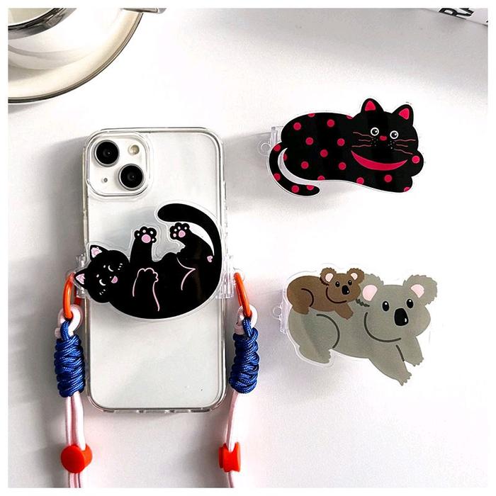 (007)tali lanyard motip hewan lucu model clip holder bisa untuk semua type hp Ponsel holder - kucing pink tua