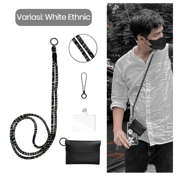 Tali Kalung Gantungan HP Aesthetic Lanyard Hp Hitam Kpunk Di Leher Handphone Metal - HSKPUNK White Ethnic - Cocopung