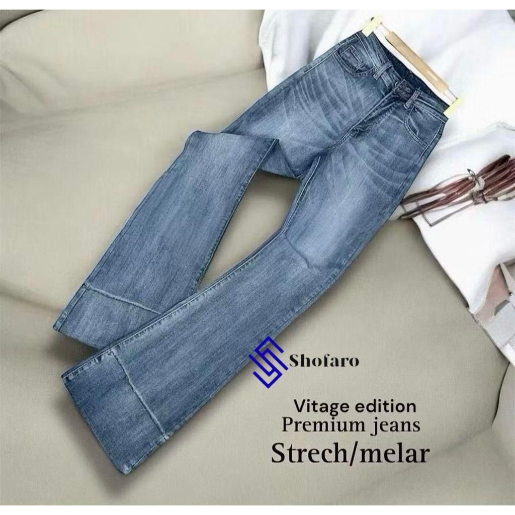 TERLARIS Shofaro Highwaist Cutbray Jeans Flare Panjang Stetch Wanita Retro Vintage Lipat Bawah celana jeans wanita