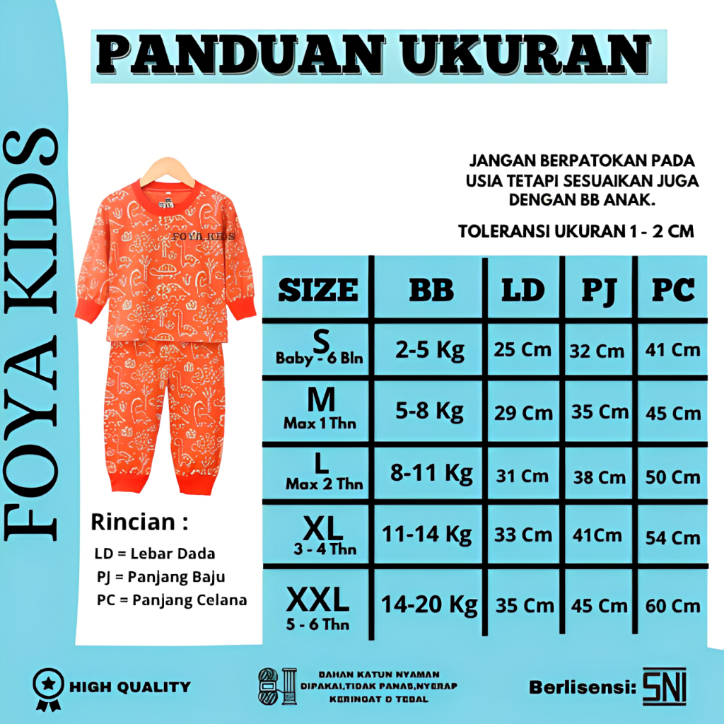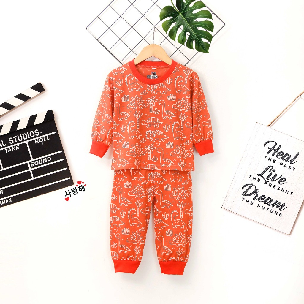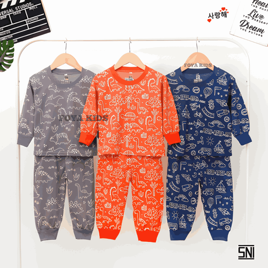 FOYA Kids -SETELAN PAJAMAS FULLPRINT ANAK LAKI - LAKI / PEREMPUAN / DINO ORANGE / DINO ABU / MOBIL / PESAWAT / SETELAN P