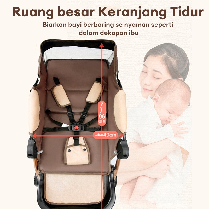 BEIGE Stroller Bayi Lipat 2 Arah Muatan 100kg Ringan untuk Travel Aktivitas Harian