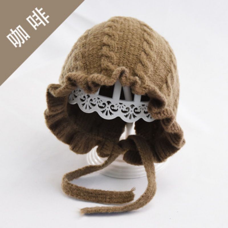 Topi Kupluk Rajut Casual Handmade Aksen Ruffle Untuk Bayi Perempuan Usia 0-3Tahun.
