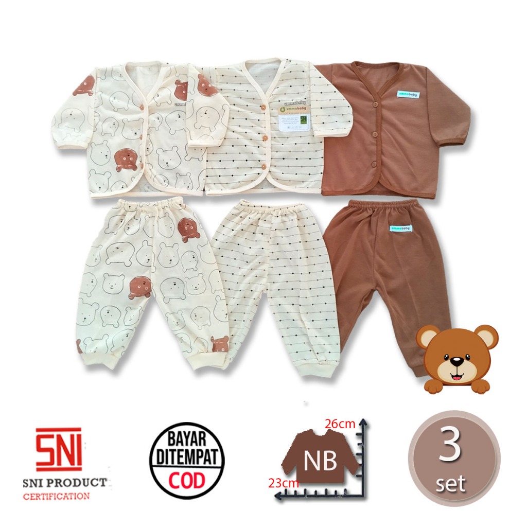 6 Pcs / 3 Set Baju Bayi Panjang Celana Bayi Setelan Newborn Baru Lahir Atasan Kado Murah Lucu Cowok Cewek Perempuan Laki