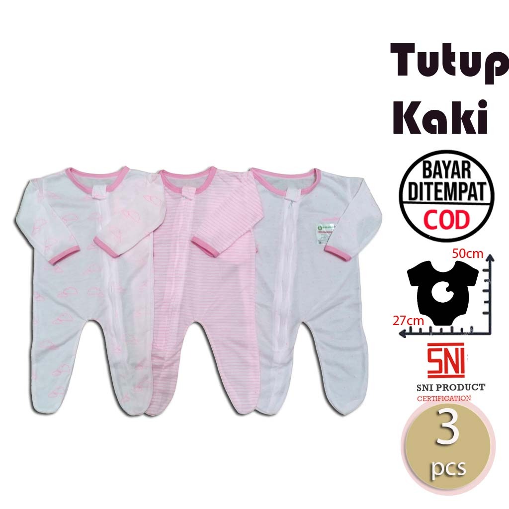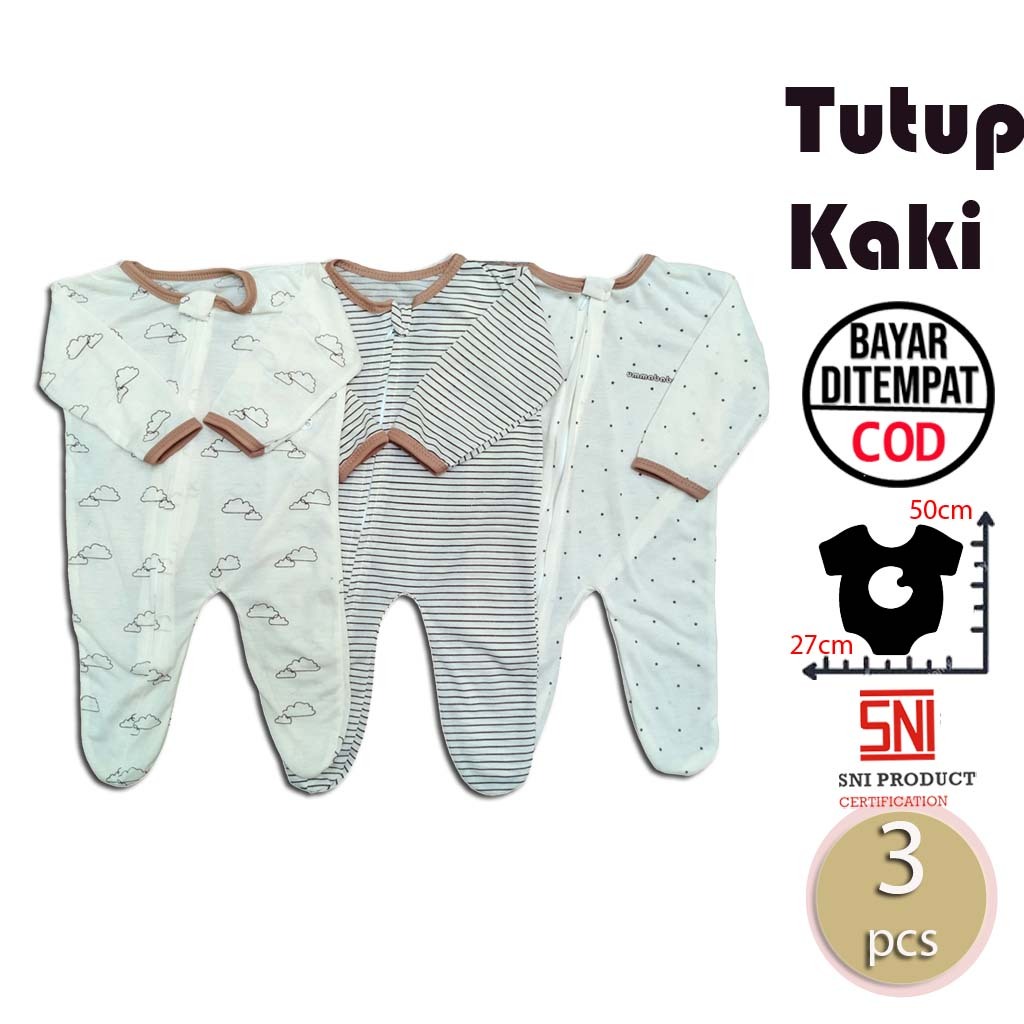 ummababyshop 3 pcs Sleepsuit Bayi Baru Lahir Tutup Kaki Romper Bayi Jumper Bayi Panjang Baju Bayi Perempuan Laki Laki Se