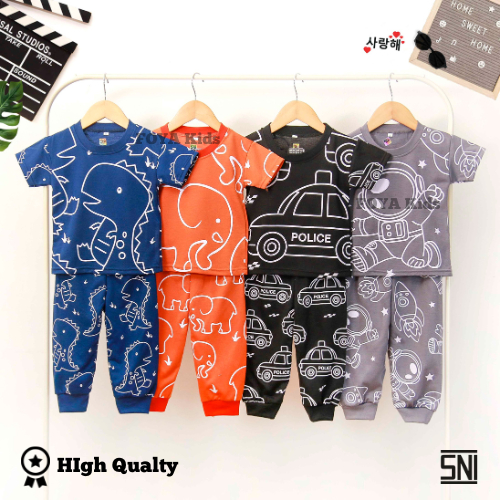 FOYA Kids - Setelan Tidur Anak Motif Abstrak usia 0 - 6 Tahun/Setelan Baju tidur Motif Animal/Mobil/Astronot/gajah/Dino/